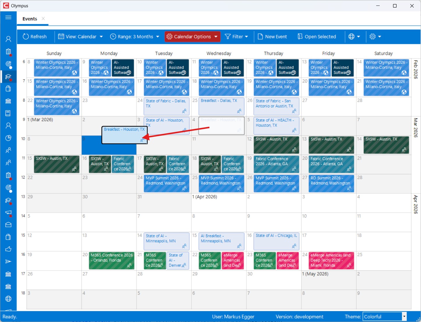 A bug that prevented events being opened for editing from the list view and when using the Open Selected button in any view, has been fixed.